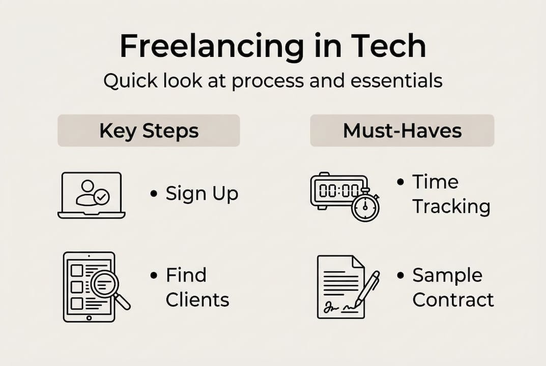 Freelancing in technology is not just working from home in pajamas. It is a full business model where you control your clients, rates, and direction. Many people assume it is a side hustle or a backup plan, but 68% of tech freelancers report an improved quality of life compared to traditional employment. That shift in perspective changes everything. This guide walks you through what tech freelancing actually is, the real benefits and risks, how the mechanics work day to day, and practical strategies to build a sustainable independent career in technology.