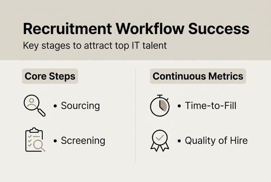 Recruiting top IT talent is harder than ever. You face long hiring cycles, fierce competition for skilled candidates, and workflows that slow you down instead of speeding you up. An optimized recruitment workflow is essential for efficiency and candidate quality. This guide offers preparation, execution, and verification steps to optimize tech recruitment. You'll learn how to diagnose bottlenecks, build structured processes, execute effectively, and measure success. By the end, you'll have a clear roadmap to reduce time-to-fill, improve candidate experience, and attract the global tech talent your organization needs.